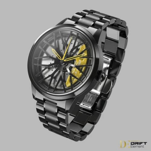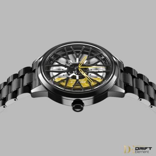Specificaties: DriftElement Motorsport Felgenuhr heren – sportwagen mannen polshorloge in 3D-design van de sterspaken M8 velg van roestvrij staal – Custom Designer horloge met mineraalglas, zwart-rood, armband