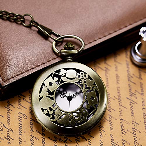 MORFONG Mannen Vrouwen Quartz Pocket Horloge Alice in Wonderland Serie Hollow Case Vintage Fob Horloges