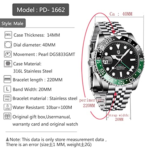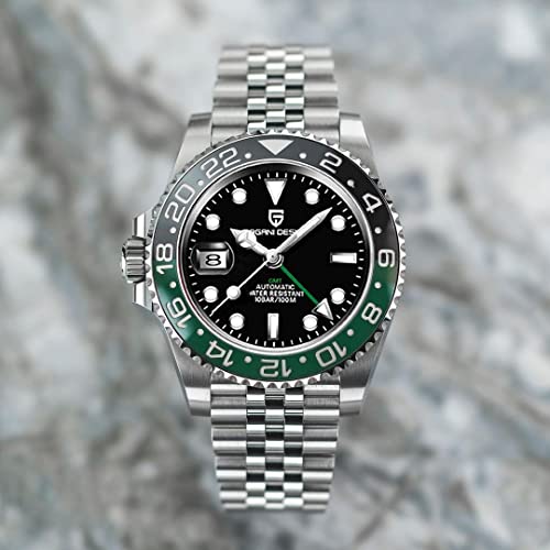 Specificaties: Pagani Design 1662 Herenhorloge, automatisch, roestvrij staal, 40 mm, saffierglas, waterdicht, oplichtend, modieus, zakelijk herenhorloge, armband
