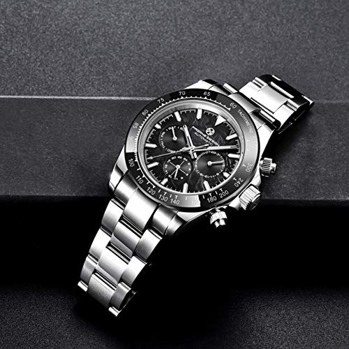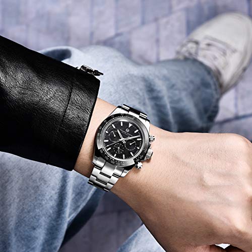 PAGRNE DESIGN Mannen Horloges Krasbestendig Synthetische Saffierglas Automatische Polshorloge Datumweergave 100 M Waterdichte Horloges voor Mannen Rvs Armband