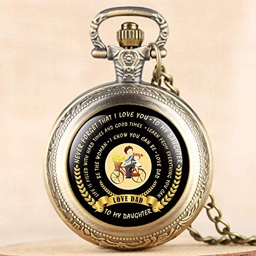 Specificaties: Stijlvol volledig bronzen zakhorloge voor heren, voor mijn dochter Love Dad Themaserie zakhorloges voor vaders, vader en dochter Zoet patroon horlogezak voor heren