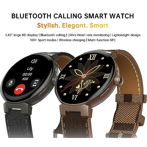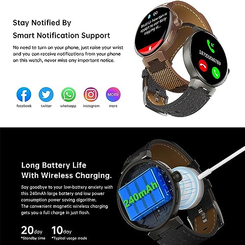 Specificaties: TROGN Smart Watch (beantwoorden/bellen), 1,4 inch volledig touchscreen smartwatch, fitnesstracker met hartslagmeter, IP67 waterdichte stappenteller, mode zakelijke klok voor mannen vrouwen (kleur: A)