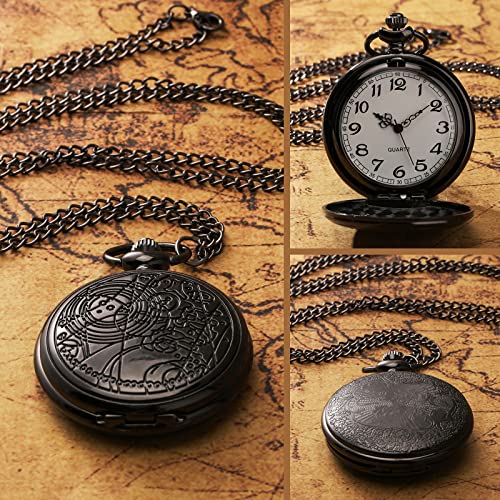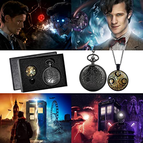 YISUYA Vintage bronzen retro Doctor Who-zakhorloge met ketting voor heren en jongens, geschenkdoos met ketting en hanger, Zwart