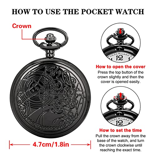 Specificaties: YISUYA Vintage bronzen retro Doctor Who-zakhorloge met ketting voor heren en jongens, geschenkdoos met ketting en hanger, Zwart