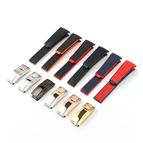 Specificaties: ZHANGUO 20 mm gebogen uiteinde zachte siliconen rubberen horlogeband compatibel met Rolex Watch Strap Daytona Submariner GMT Explorer 2 Bracelet Folding Buckle (Band Color : 4, Size : 7)
