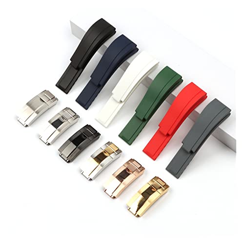 Specificaties: ZHANGUO 20 mm natuur zachte siliconen rubber horlogeband compatibel met Rolex Strap Daytona Submariner GMT OysterFlex Armband vouwen gesp (Band Color : 2, Size : 5)